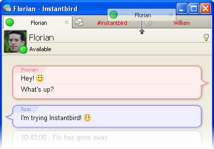 Conversations are grouped in Tabs, ensuring you never feel swamped by conversations windows poping up everywhere.